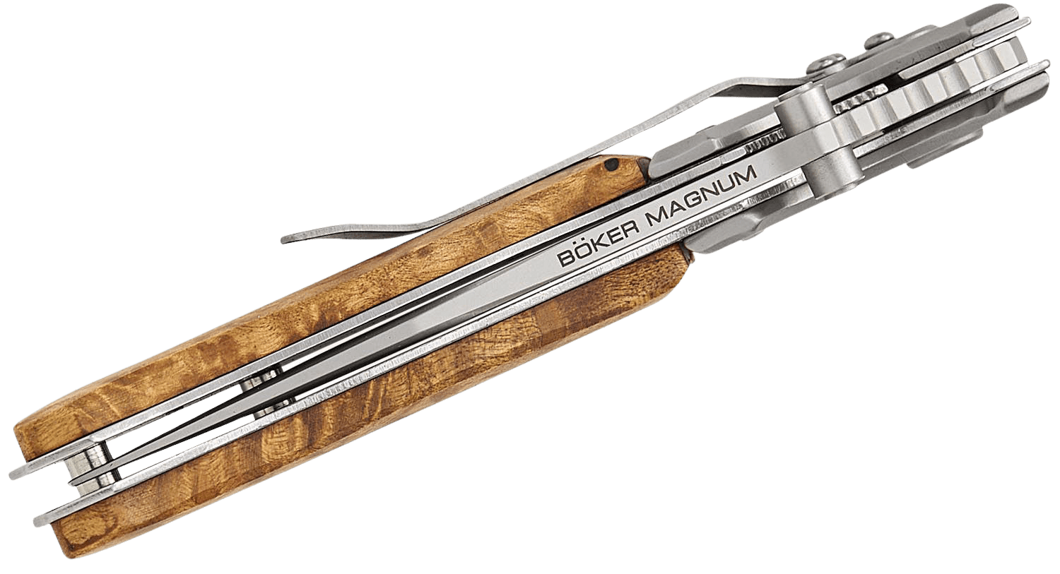 Magnum Forest Ranger je još jedan uspješan model koji je bio u stalnoj potražnji kao dvoručni nož. A kako je kupac uvijek u pravu, slijedili smo njihove zahtjeve. Čak i najzahtjevniji zadaci mogu se lako obaviti sa čvrstim i impozantnim nožem. Fino pjeskarena oštrica 440A clip point zaštićena je od nenamjernog savijanja mehanizmom za zaključavanje. Korice od nehrđajućeg čelika i izdašni umetci od korijena drveta čine ovaj nož pravim komadom nakita. Zahvaljujući priloženoj kopči za džep, nož je uvijek spreman za sljedeću upotrebu.